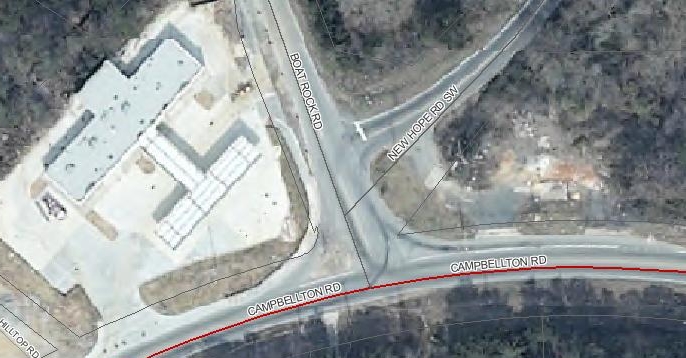 The aerial photo above is of the intersection of Boat Rock and Campbellton Road near New Hope Road.  For years drivers in Sandtown have experienced first hand the hazards and traffic congestion at this dangerous un-signaled intersection on state route 166.